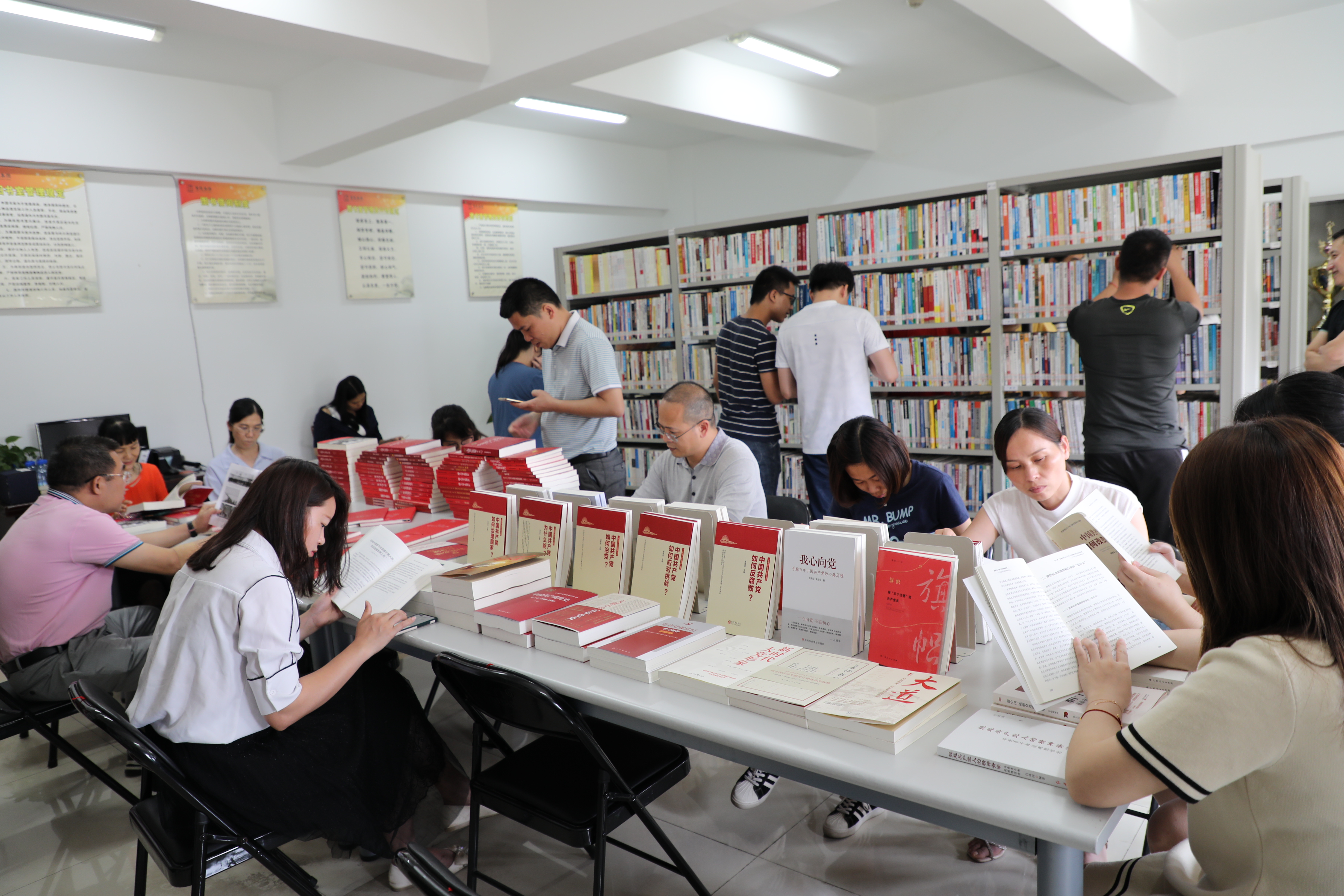 “黨建書院”位于百投集團二樓,院內藏圖書4000多冊,主要為黨的方針政策及國家領導人的思想著作、地方志等紅色主題類圖書,此外書柜上也擺放了貼近生活的綜合類圖書,最大程度地滿足了不同層次、不同領域黨員和群眾的讀書學習需求。