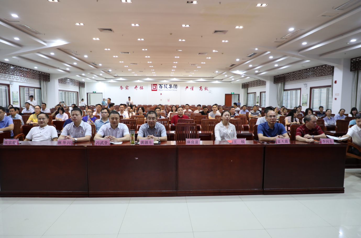 百投集團組織黨員干部職工在六樓大會議室集中收聽收看直播盛況。